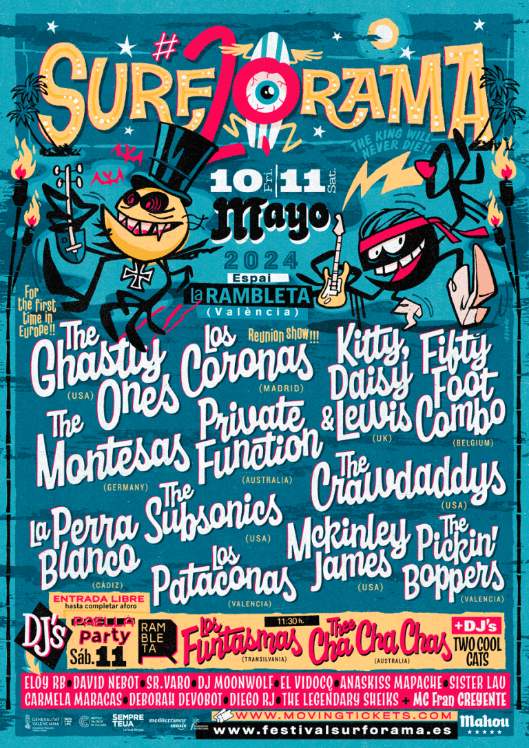 El festival Surforama, el evento ideal para los amantes del surf y del rock, va a celebrar los días 10 y 11 su vigésima edición con ubicación en la Rambleta, Mislata, Valencia. Desde sus humildes comienzos en 2004, este festival se ha convertido en una cita imprescindible para los seguidores de este género musical tan característico.