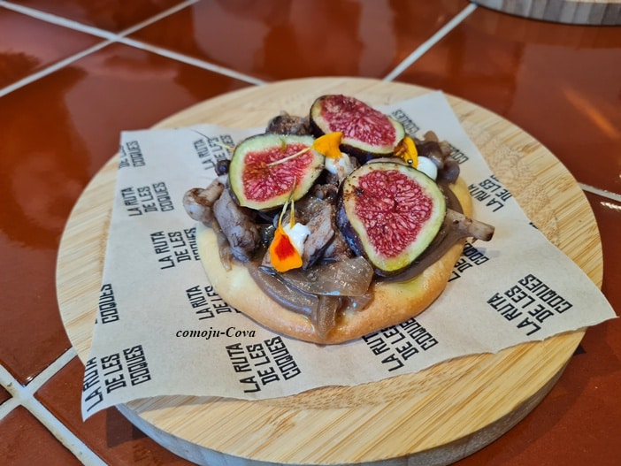 | Glops i Llandes | El Cabanyal (Valencia) | “Coca del bosque umami”: crema de shiitake con lima, setas salteadas, mayonesa de lima e higos frescos | El Cabanyal |