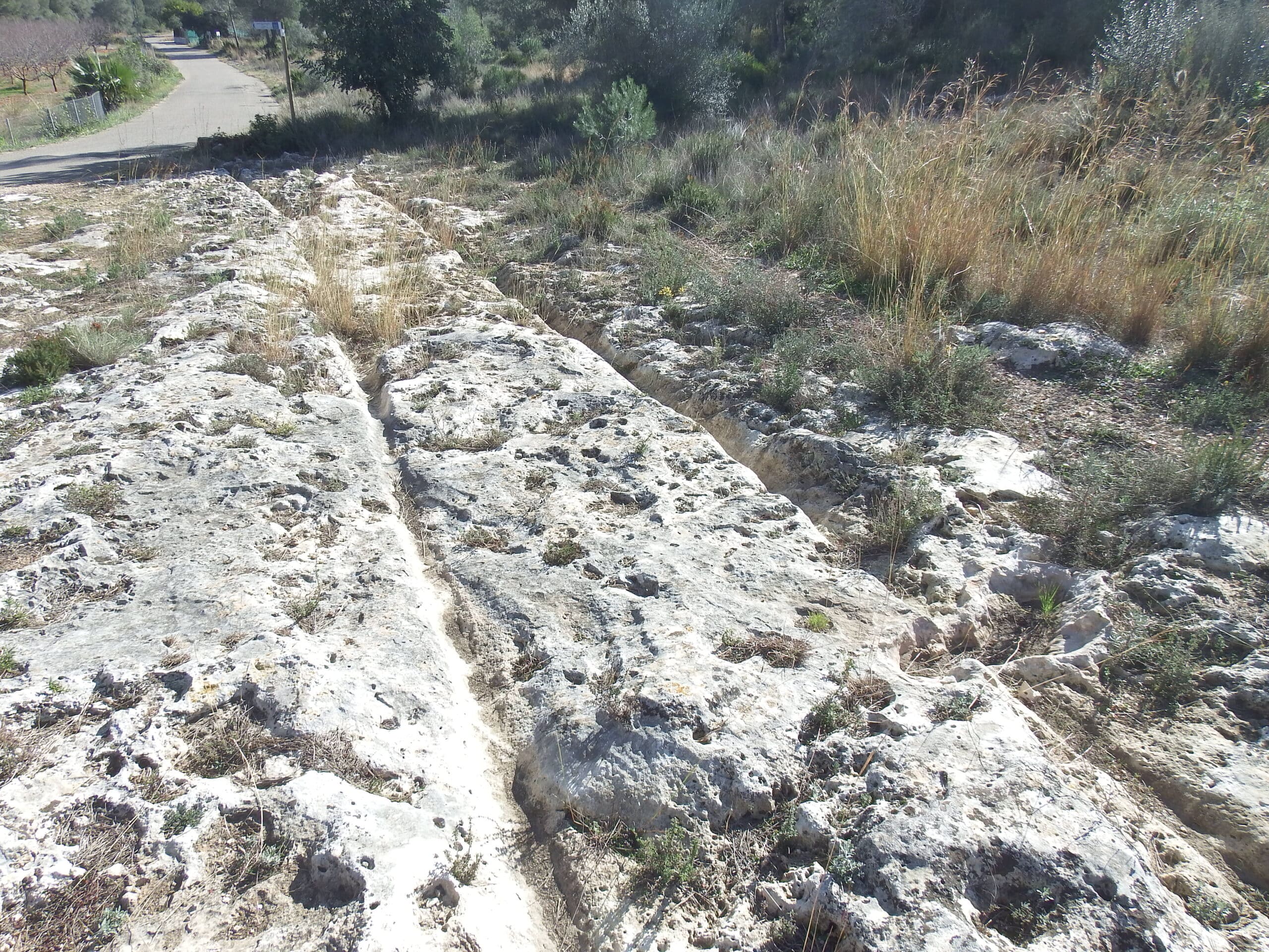 La roca caliza predominante en la región de L’Énova facilitó la creación de estas carriladas, ya que su relativa suavidad permitía el desgaste gradual bajo el peso de los carros. La técnica utilizada implicaba tanto el desgaste natural por uso como la intervención directa para mejorar y mantener la superficie de los caminos. Esta combinación de métodos refleja una sofisticada comprensión de las propiedades del material y de las necesidades del transporte terrestre.