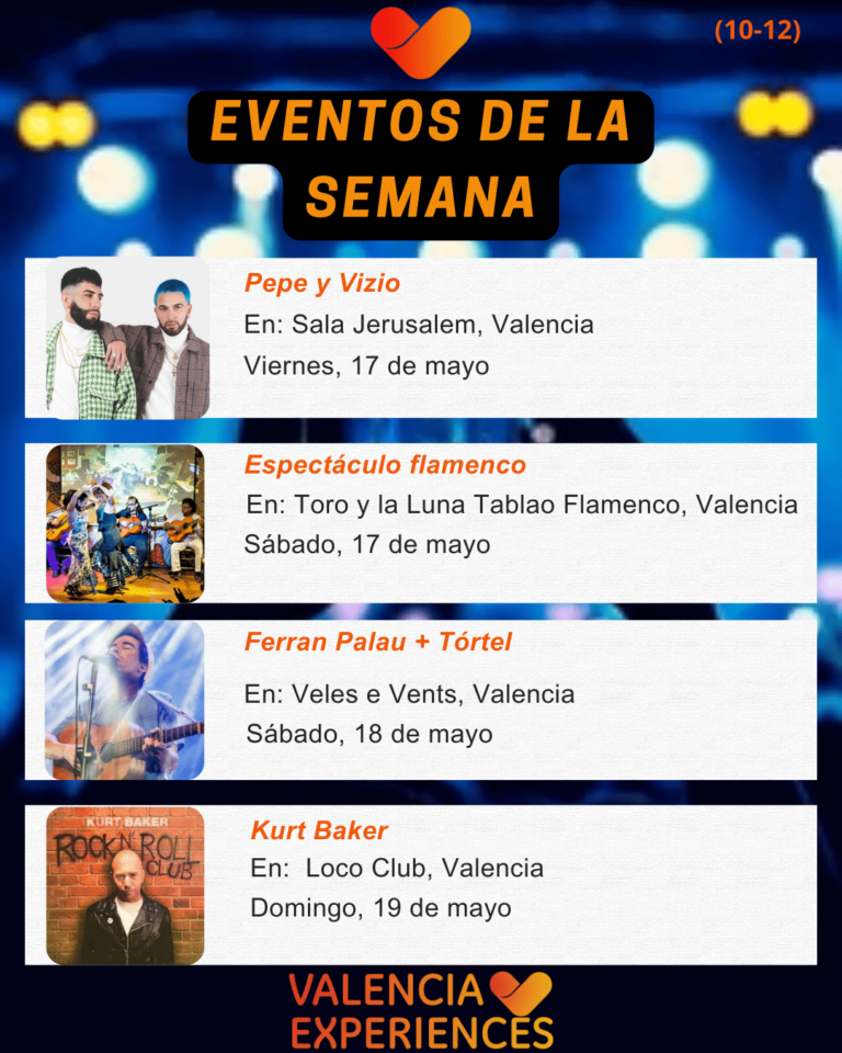 Cada semana, la ciudad de Valencia se llena de vibraciones mientras nos preparamos para recibir toda la variedad de conciertos que atrae la ciudad. Desde los clásicos hasta los más contemporáneos, los amantes de la música tienen la oportunidad cada semana de disfrutar de espectáculos en vivo para todos los gustos.